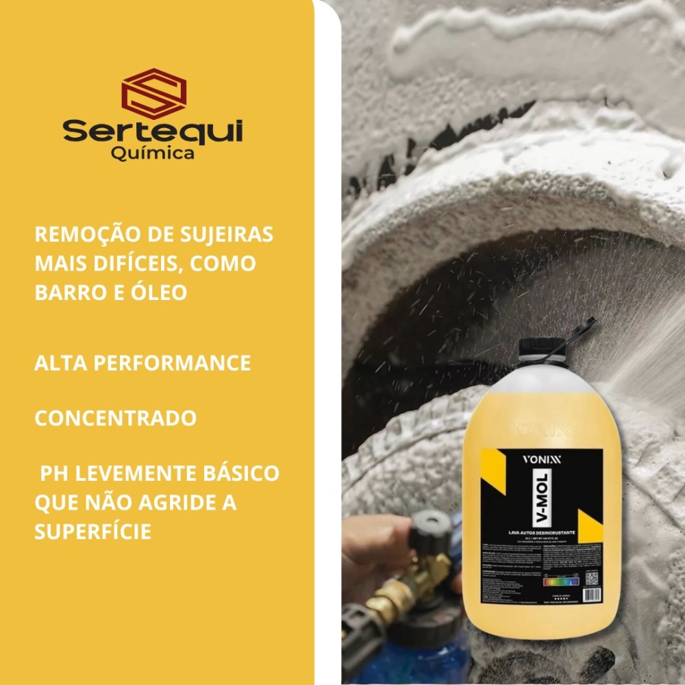 V-Mol é um lava autos biodegradável com ph levemente básico que não agride a superfície. Ideal para lavagem de automóveis, em especial para remoção de sujeiras mais difíceis, como remoção de barro e óleo.