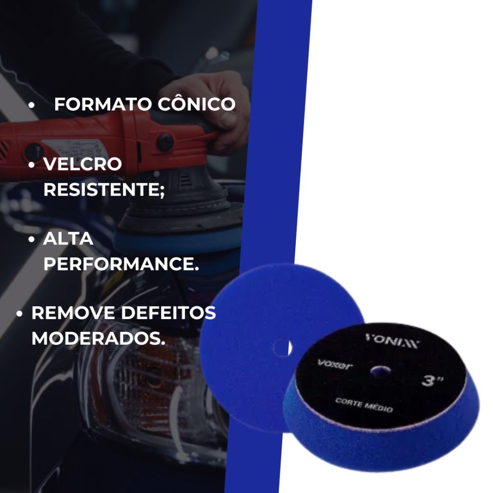 A Boina Voxer Corte Médio Azul 3’’ foi desenvolvida para proporcionar um corte eficaz e controlado em áreas de difícil acesso ou superfícies menores. Ideal para correção de pinturas com defeitos moderados, essa boina combina desempenho e segurança, removendo marcas de lixa, riscos moderados e imperfeições sem comprometer o acabamento.