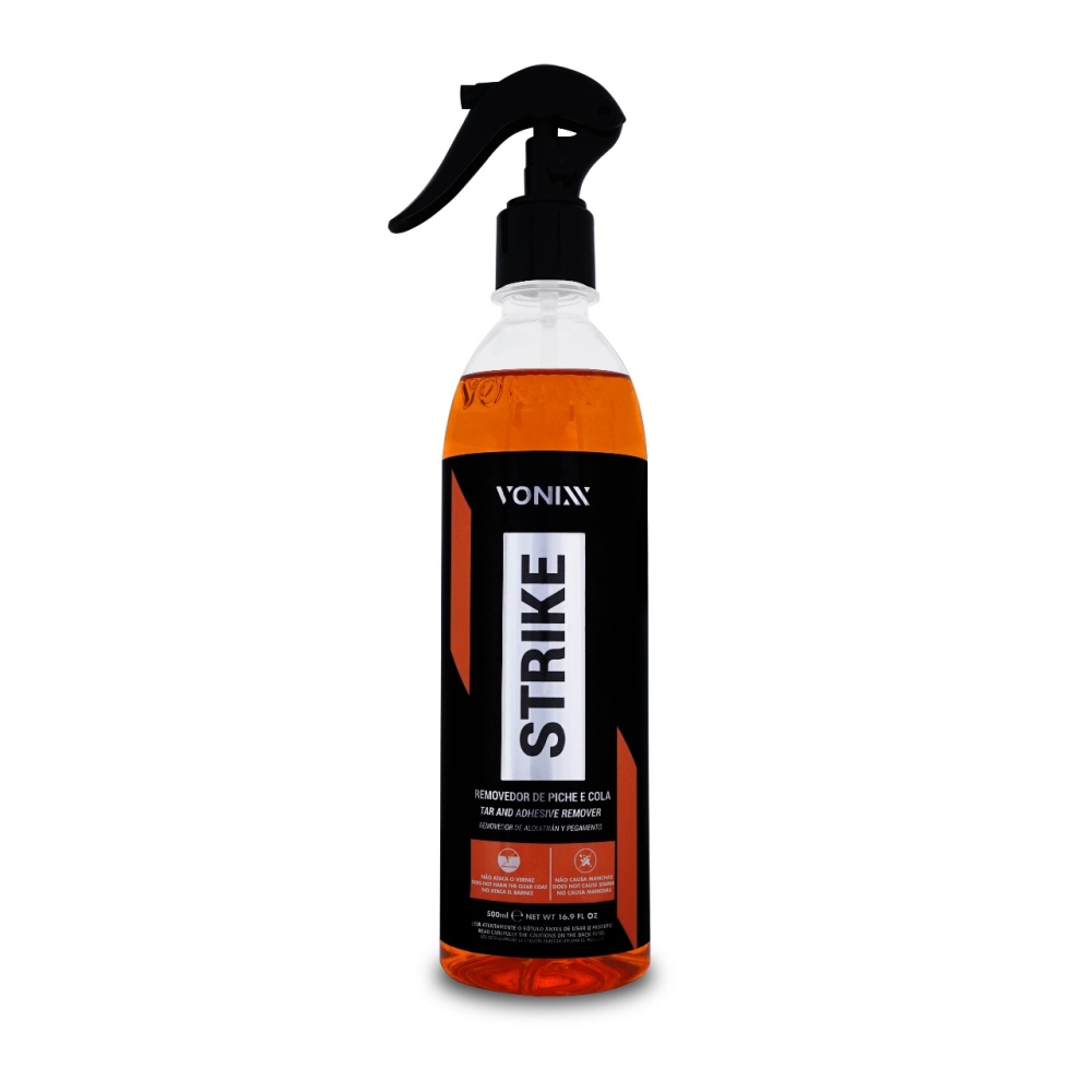 Strike é um produto de fórmula balanceada que age na remoção piche e da maioria de resíduos de colas de adesivos e etiquetas autocolantes em geral.